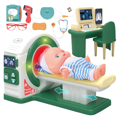 Juego de simulación de regalo de cumpleaños preescolar, escáner CT de simulación, Kit de médico para niños con estetoscopio de juguete, herramientas médicas, conjunto de juguetes médicos