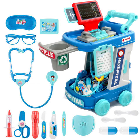 Juego de médico para niños, juego de simulación de estetoscopio, herramienta simulada, estación médica, carrito, juego de juguete para niñas y niños